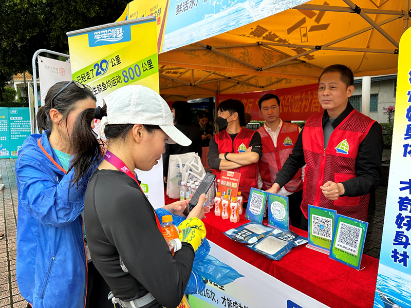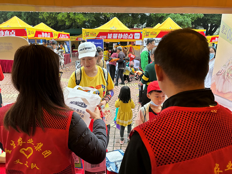 生生农业集团不仅为所有参与者免费提供补给物资,还热情引导健儿们签到打卡留念。