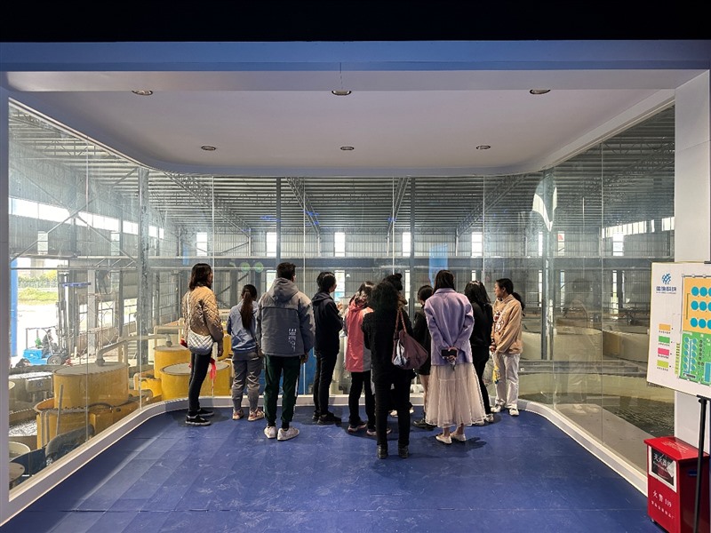 第二站,师生们来到生生农业集团创新研发中心,参观了集团的智慧渔业平台总驾驶舱、循环水养殖工厂、预制菜智造中心等,了解到集团“从塘头到餐桌”的全产业链运营方式、智慧渔业养殖模式、水产品加工的智能化和现代化,对集团的综合实力给予了高度评价。